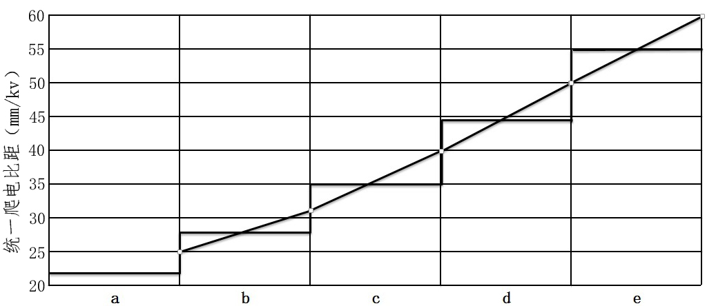 絕緣子的爬電距離與其兩端承擔(dān)的最高運(yùn)行電壓(對于交流系統(tǒng),為最高相電壓)之比,mm/kV。