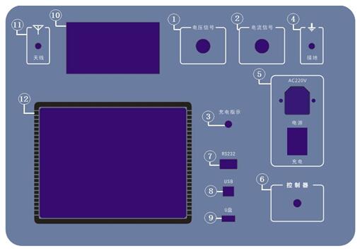 3、充電指示燈;4、接地端
