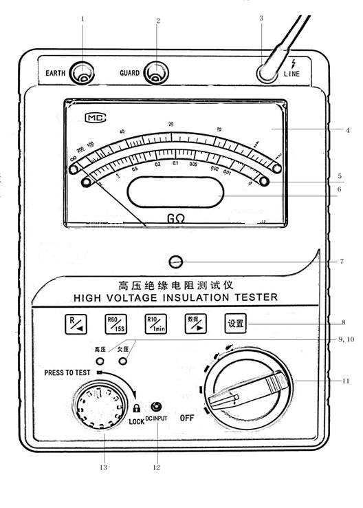 調(diào)整機(jī)械指針位置,在電源關(guān)閉下使其對(duì)準(zhǔn)∞刻度線。 |