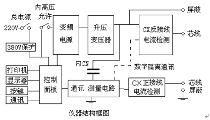 升壓變壓器:將變頻電源輸出升壓到測量電壓,最大無功輸出2KVA/1分鐘。