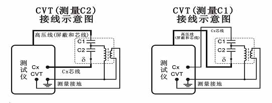 該儀器可用正、反接線方法測量不接地或直接地的高壓電器設備,同時可以測量電容式電壓互感器的tgδ及主電容C1、C2電容量。