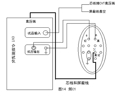 將紅色專用高壓電纜從儀器后側的HVx端上引出,高壓芯線(紅夾子)接被試設備高壓端,高壓屏蔽線(黑夾子)懸空;低壓端接地(見圖12);此時的低壓CX輸入線不接;