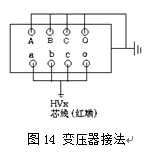 接法測量,(接線圖見反接法),檢查儀器與電力變壓器連接正確后,選用異頻、
