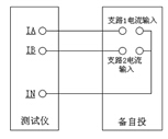 電流接線較簡單,一般按軟件界面提示,將測試儀的IA、IB分別接保護(hù)的兩路進(jìn)線或主變支路電流輸入端,如右圖所示: