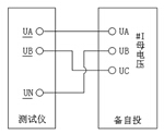 b) 將測試儀三個(gè)電壓通道分別接入備自投三相電壓。接線采用一一對應(yīng)接線,接線方法如右圖。