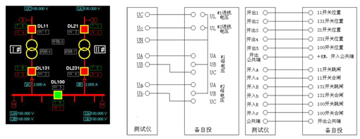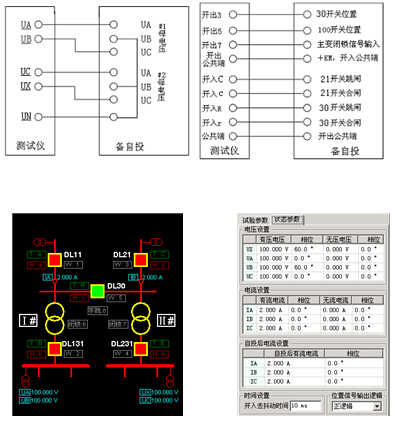 并且在接線時(shí),一般將測試儀UA、UB分別接備自投I母線的UA、UC相,I母線的UB接測試儀UN。具體接線請參考下文舉例。