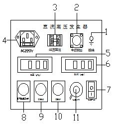 6.?dāng)?shù)顯電流表:數(shù)字顯示直流高壓輸出電流。