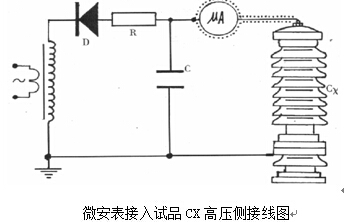 b.當(dāng)需要精確測量被試品泄漏電流時,則應(yīng)在高壓側(cè)串入高壓微安表(見下圖)