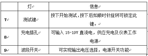 注意:當(dāng)開(kāi)機(jī)時(shí),儀表電源狀態(tài)燈紅燈閃亮,表示電池電量快要耗盡,應(yīng)立即充電。