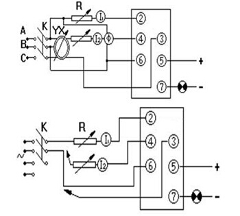 按圖接線,可用較大容量的移相器動作電流和制動電流間的相角Φ,如圖所示。亦可用改變電源相別來改變相角Φ,如圖所示。