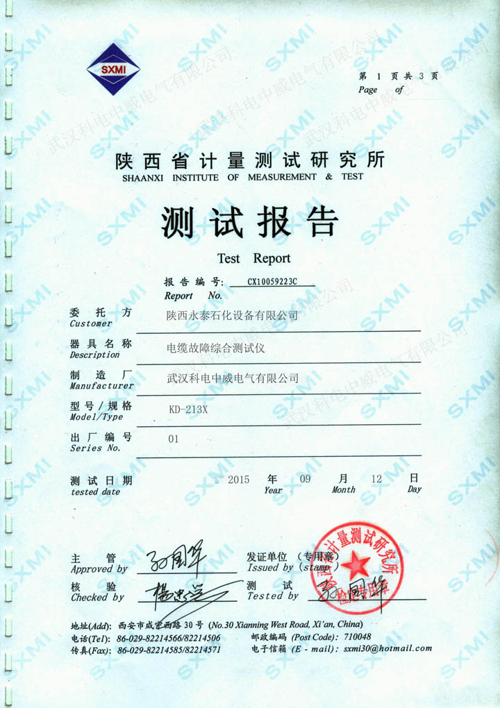 KD-213X電纜故障測試系統(tǒng)測試報(bào)告