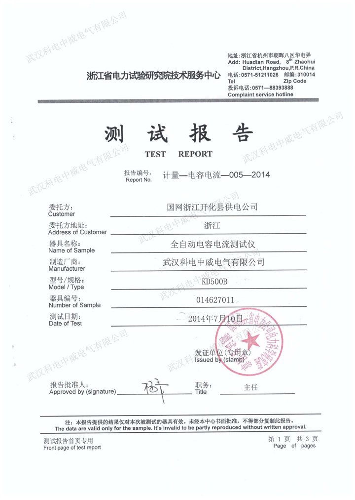 KD-500A全自動電容電流測試儀測試報告