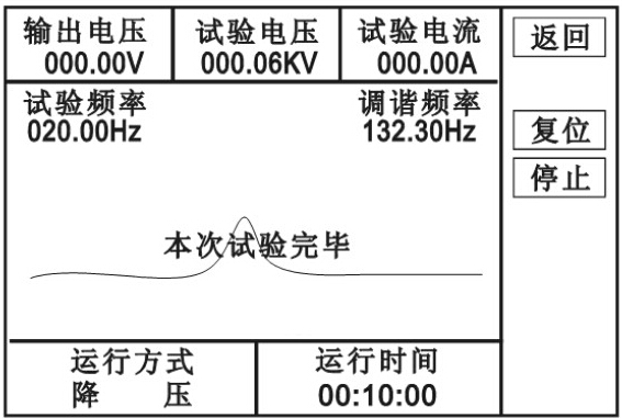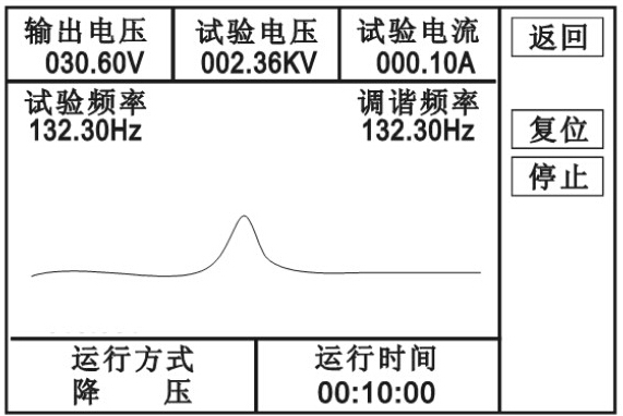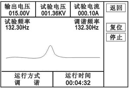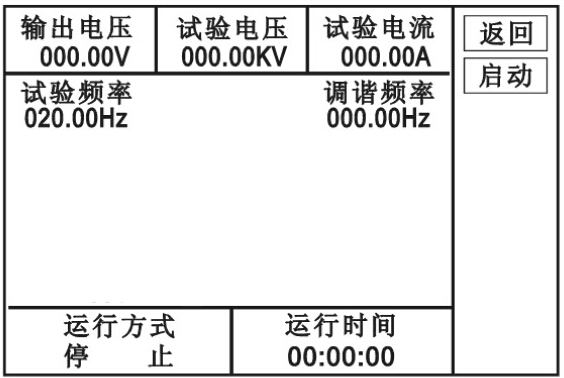 2、自動(dòng)試驗(yàn): 進(jìn)入下圖界面,點(diǎn)擊“自動(dòng)”,進(jìn)入下圖界面,點(diǎn)擊“啟動(dòng)”,“確認(rèn)”,則自動(dòng)進(jìn)行調(diào)諧、升壓、計(jì)時(shí)、降壓。