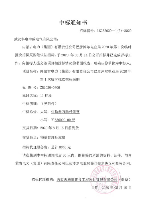 此次中標,是科電中威過硬的產(chǎn)品以及強大售后服務(wù)的又一次證明,這也極大的鼓舞了公司員工的士氣,讓大家對下半年的工作信心倍倍增!