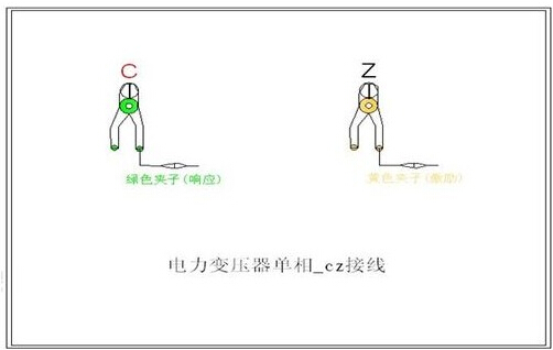 黃色夾子(輸入)鉗在變壓器的z點(diǎn)上,綠色夾子(測量)鉗在變壓器的c上,及代表單相X、Y、Z型cz的測量。