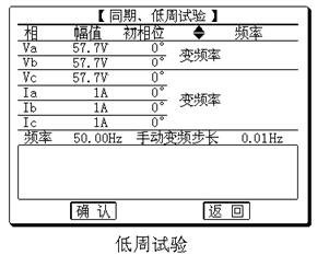 低周試驗:設定第二組也變頻,則Ua、Ub、Uc、Ia、Ib、Ic同時變頻,可進行低周試驗。