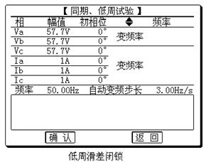 1、做低周滑差閉鎖時,應采用自動變頻方式,此時頻率以每 1 秒改變 f/t 的速率勻速變化,可方便地做滑差閉鎖試驗。