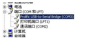 6、從右圖中可以看出,該端口被默認(rèn)為COM3,應(yīng)將其改為COM1。在Prolific USB-to-serial Bridge(COM3)上雙擊鼠標(biāo),或右鍵點擊,從菜單中選擇“屬性”;
