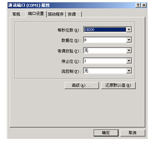 7、在彈出的對話框中的“端口設(shè)置”頁中,一般選擇“每秒位數(shù)”19200,如右圖所示:然后按下“高級”按鈕;