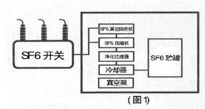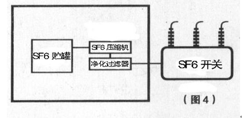 當(dāng)SF6從一個(gè)氣室中抽出時(shí),氣體便自動(dòng)地流經(jīng)凈化過濾器,通過SF6壓縮機(jī)壓縮冷卻,可以氣態(tài)也可以在一定高壓下以液態(tài)形式儲(chǔ)入SF6貯罐。