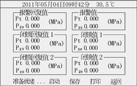 外界氣路均準(zhǔn)備好以后,點(diǎn)擊“啟動(dòng)”,系統(tǒng)會(huì)按前面設(shè)定的檢測(cè)方式自動(dòng)完成全部檢測(cè)。如果有問(wèn)題,系統(tǒng)會(huì)顯示“器件故障”,此時(shí)用戶應(yīng)檢查線路和氣路的連接是否正確。測(cè)試完成后,可以保存和打印測(cè)試結(jié)果。點(diǎn)擊“返回”后系統(tǒng)退出測(cè)試主界面。