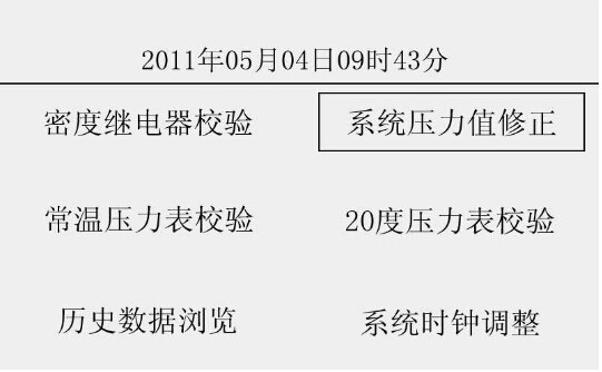 在系統(tǒng)主界面旋轉(zhuǎn)飛梭使光標(biāo)選擇“系統(tǒng)壓力值修正”,如圖6所示,此時(shí)可以進(jìn)入壓力值修正界面,以修正系統(tǒng)的檢測(cè)誤差。由于壓力修正值在出廠時(shí)已經(jīng)校好,用戶不必再修正,以免影響系統(tǒng)的檢測(cè)精度。